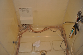 新しく給湯機を取り付けて浴槽を戻して完成になります。