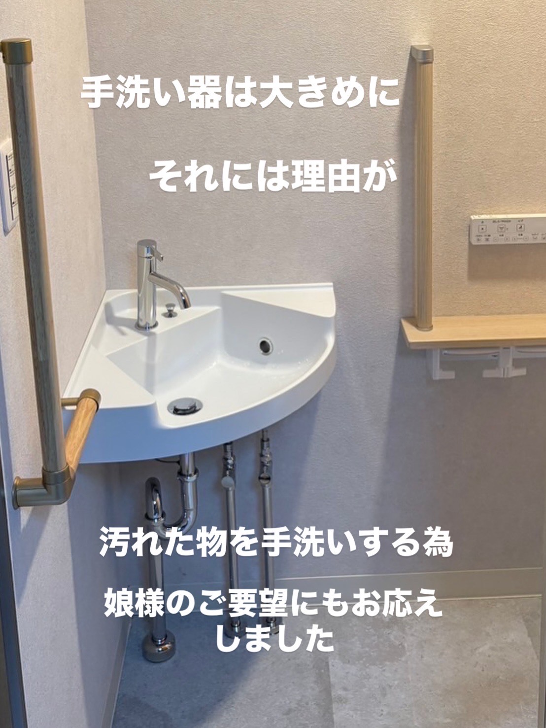 将来車いすでも使えるように、一般的なトイレよりも広く設計。