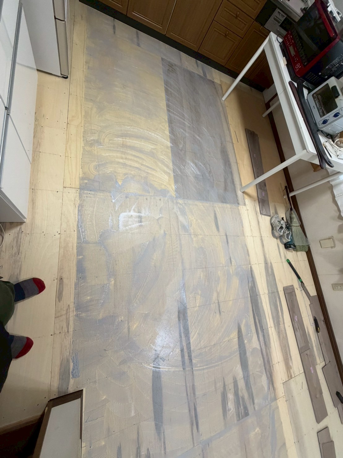施工内容:床下地補強(合板増し張り)・フロアータイル施工